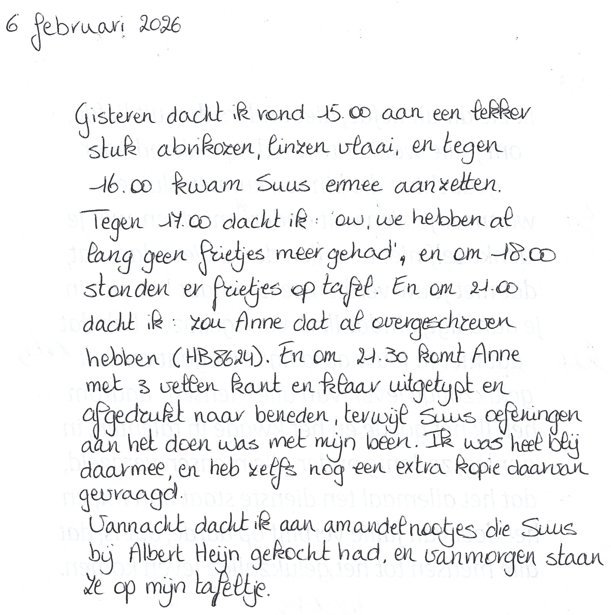 Dank U, hemelse Vader, dat ik mag voelen dat U er bent. Dat U voor alles zorgt. Dat U alles wat er ook maar gebeurt ten goede keert voor het doel van ons verblijf op aarde. Dat ik mag beseffen dat ik nooit alleen ben, ook al vergeet ik dat soms weleens. Dat al het ongemak dat er op aarde is, altijd iets goeds in zich heeft, ook al beseffen wij dat niet. Dank U voor Uw liefde, die zo groot is, dat ik het niet kan bevatten, dat ik er wel iets van mag voelen. Dank U, dat U zo vrijgevig bent en wat er ook gebeurt altijd tot een oplossing brengt, zoals dat het beste is. Dank U dat wanneer ik mijn eigen weg ga, U mij terughaalt naar Uw weg. Dat ik mag zien hoeveel beter Uw weg is. Dank U dat U mij tot nederigheid brengt, want ik besef soms niet hoe eigenwijs ik ben. En bovenal dank ik U, dat het alleen Uw liefde is die mij richting geeft, terwijl ik geneigd ben een andere weg te gaan. Dank U hemelse Vader, dat U voor mij zo vergevend bent, en mij steeds weer optilt wanneer ik gevallen ben. Voor U wil ik mijn hoofd buigen, en ik weet dat dat niet een letterlijk buigen is, maar een buigen voor Uw Wil, die ik altijd in mijn hart kan weten, omdat U daar altijd bent. In nederigheid kan ik U alleen danken, voor Uw liefde die U hoe dan ook altijd aan mij geeft, ook wanneer ik er niet bij stilsta. In alle nederigheid, lieve hemelse Vader, dank U.